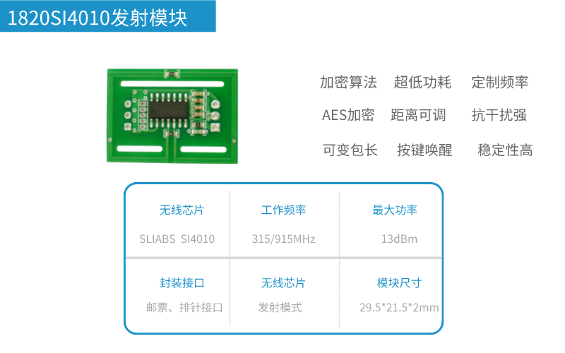 采用SKUABS的SI4010工業(yè)級無線芯片,出長編碼,,42億地址碼,接收穩(wěn)定安全,抗干擾,防破解,AES加密,無線FSK可定制協(xié)議,功能,外形,距離更可達到200米以上,此模塊可加裝在充電槍內
