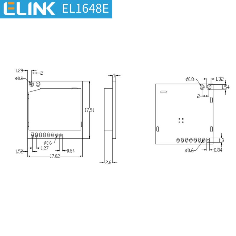 6.EL-1648E無線模組的外形尺寸圖(單位:mm)